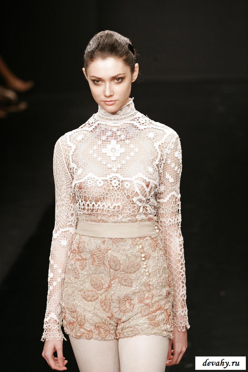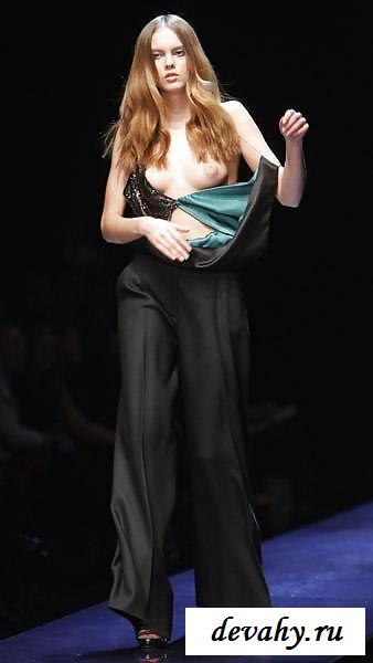 Сексуальные манекенщицы со стройными телами сегодня покажут свои титьки во всей красе. Высокие девушки, представленные на снимках будут ходить по подиумах и их не будет смущать то, что у них полностью видны все груди. Все эротические наряды, которые можно наблюдать на этих сучках в скором времени поступят в продажу. И соответственно уже летом мы сможем видеть девушек вживую именно в таком виде. Поэтому много парней будет возбуждаться на улице на таких телочек.