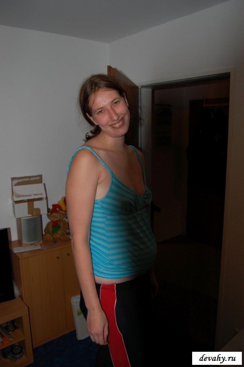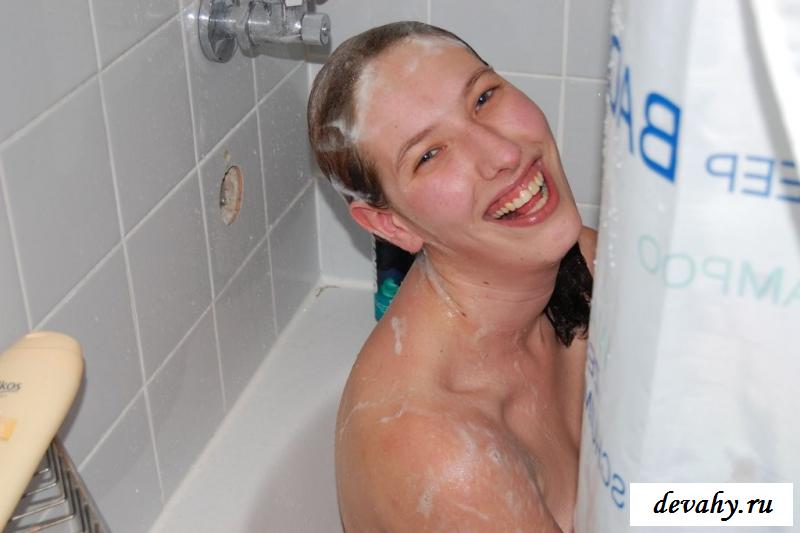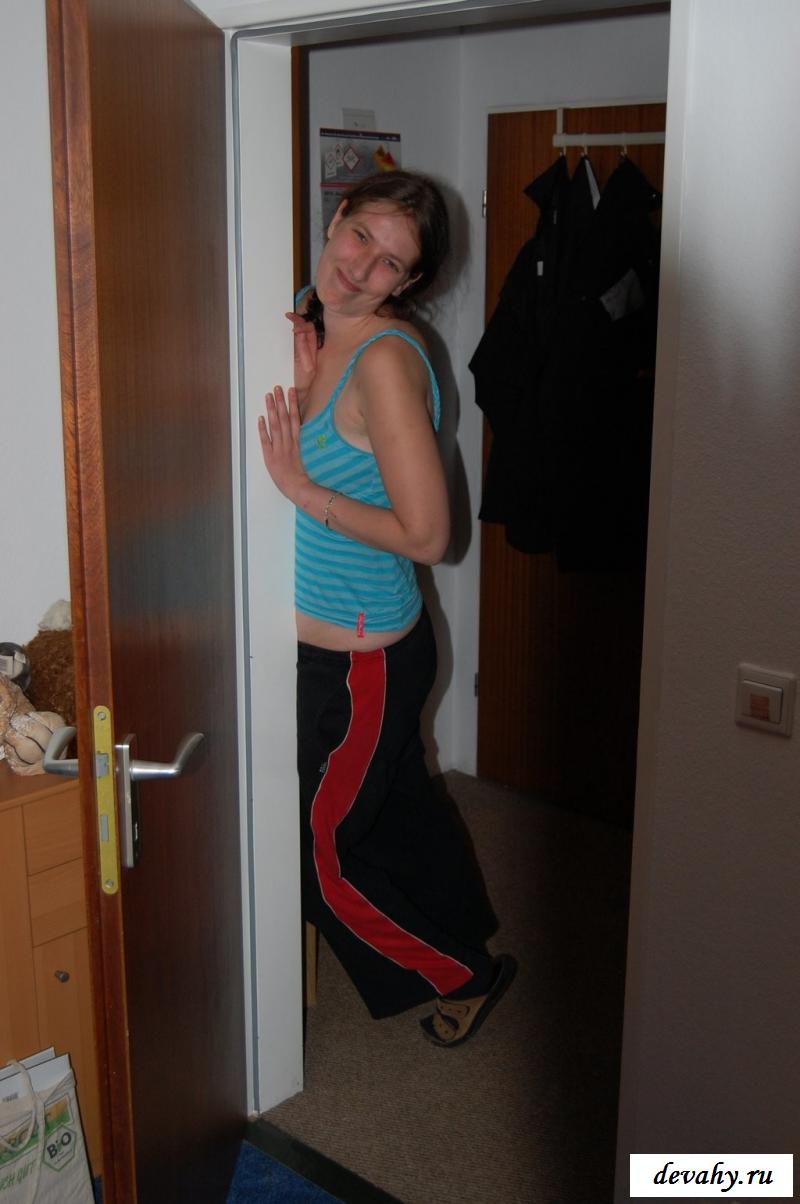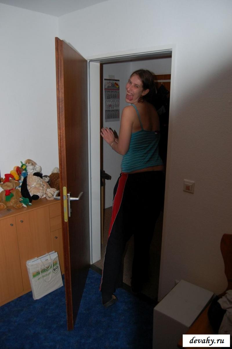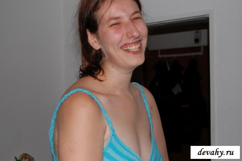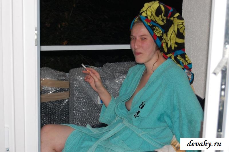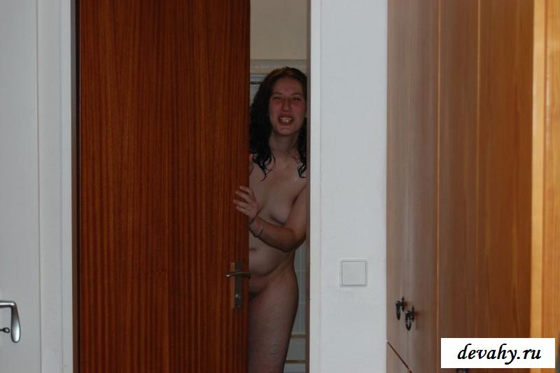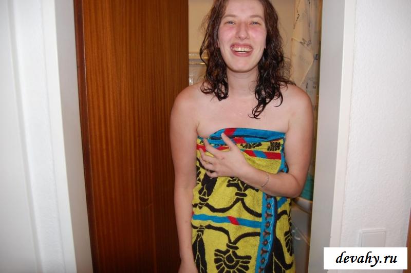 Раздетая улыбчивая шлюха решила принять душ, прежде чем забавляться со своим очередным клиентом. После ванных процедур она засветила свое тело и показала, как привлекательно смотрятся ее гениталии. Но, несмотря на привлекательность ее половых органов, лицо у нее не совсем хорошее, но это не устанавливает мужиков, любящих развратные игры со страшненькими молоденькими телками. И после этого она прямо с мокрой киской направилась в свою спальню, где заперлась за дверью.