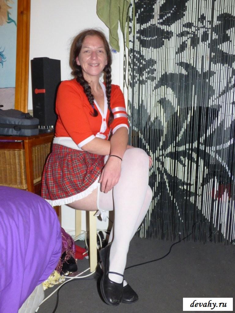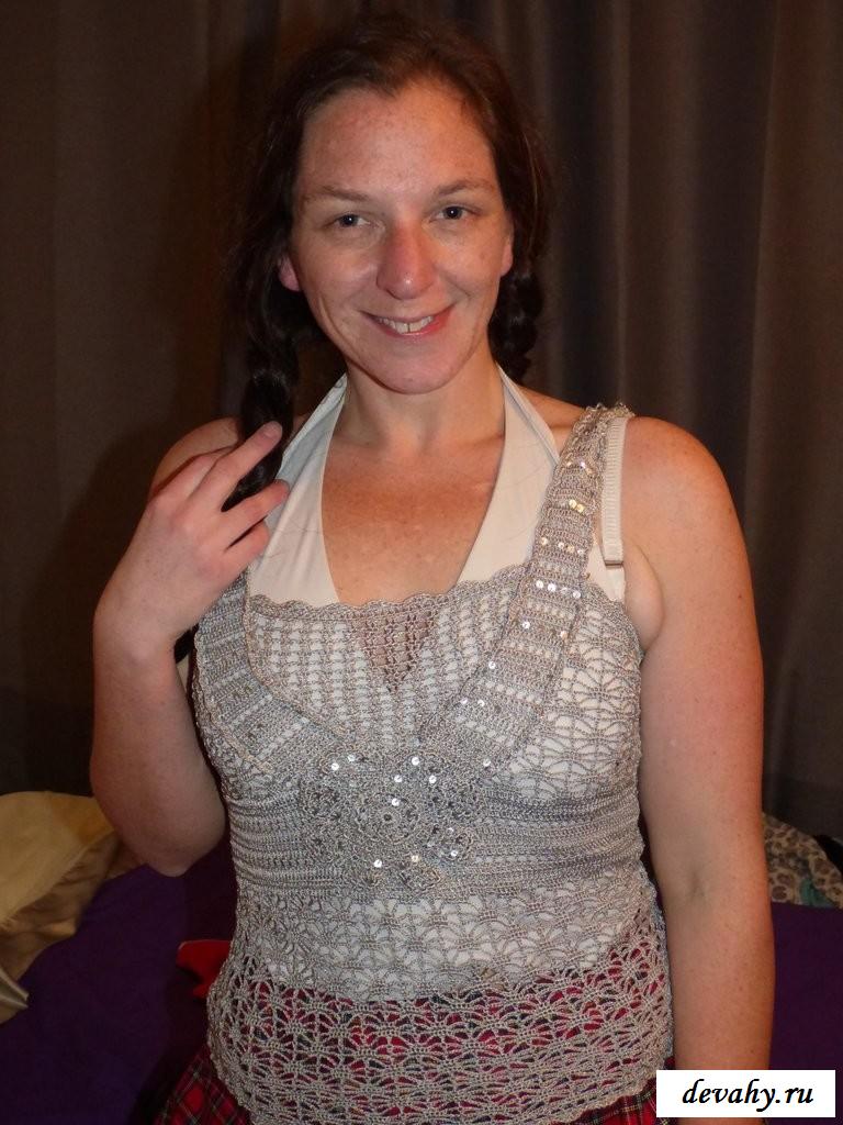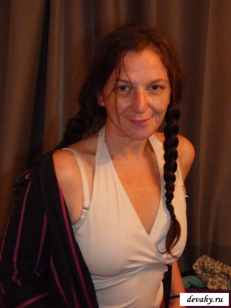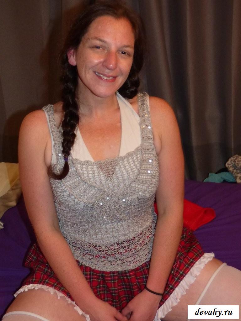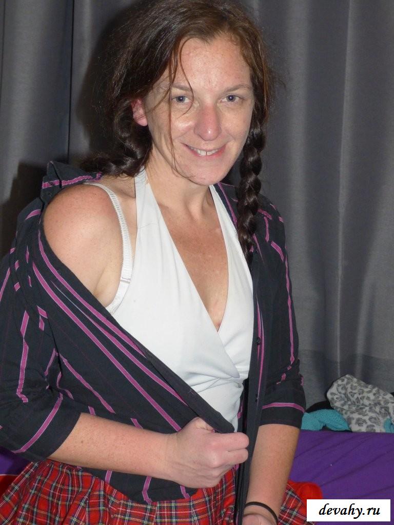 Эротика старой страшной сучки из Великобритании получилась просто отменной, когда она одела свой самый сексуальный наряд и начала фотографироваться в квартире. Некрасивая англичанка в юбке и в красненьком топе покрутила задком перед камерой, после чего улыбнулась и стала раздеваться. Когда она повернулась к объективу, то стали видны ее светлые нейлоновые чулки, которые сверху были украшены бантиками. И как только развратные игры закончились, она отправилась в постель и раздвинула там ножки.