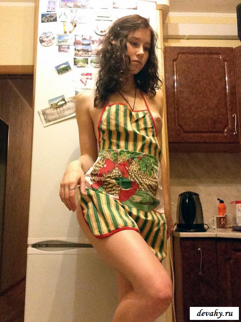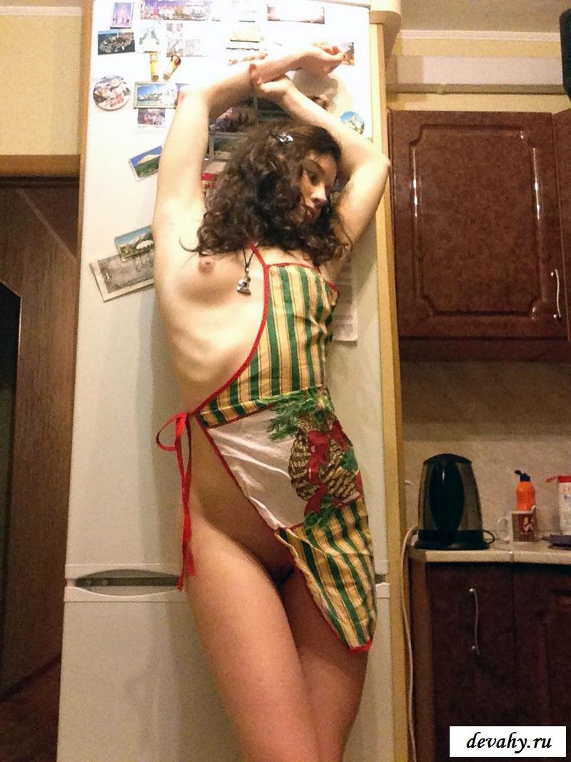 Голая кудрявая телочка решила приготовить себе и своему любовнику ужин. И эта похотливая одногруппница захотела сделать это необычным образом – без одежды. И вот теперь можно сказать, что она, пожалуй, считается самой сексуальной поварихой, которая стоит за кухонным столом на высоких каблуках. В конечном итоге она и вовсе избавилась от всех тех элементов, которые бы хоть немного закрывали ее вагину и мы можем наблюдать эту девку во всей красе.