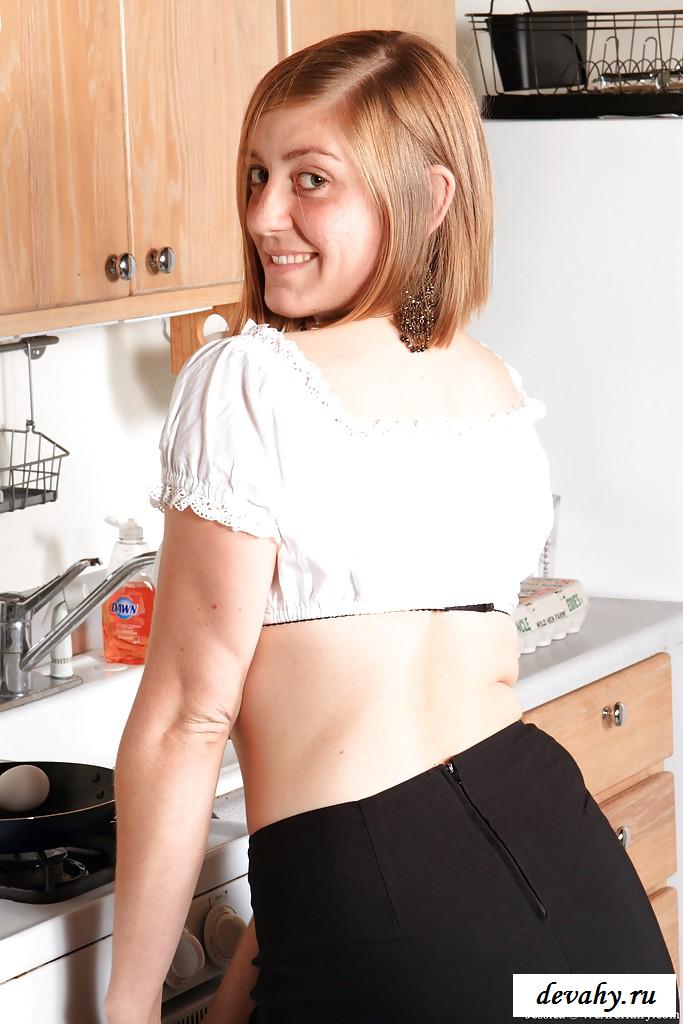 Во время приготовления фирменного блюда в духовке голой молодой поварихе стало очень жарко, и она начала постепенно избавляться от всей своей одежды и фартука. Все это сучка начала делать прямо у кухонной плиты. Как только она стянула с себя половину всей одежды, то сразу же взобралась на мебель с раздвинутыми ножками и стала трогать вокруг своего огромного влагалища половые губки, которые были скрыты за ее растительностью.