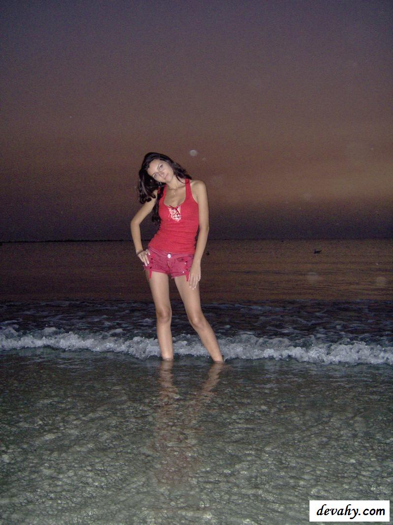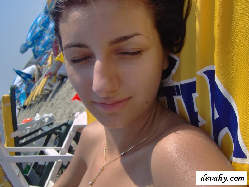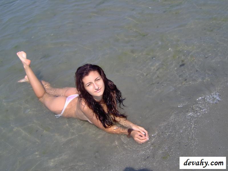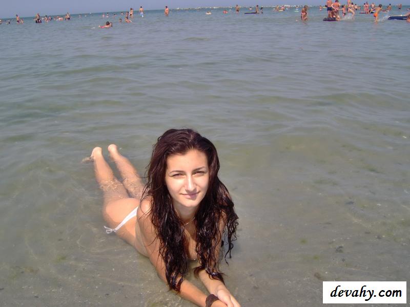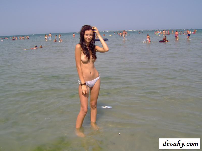 Голая подруга с превосходными формами захотела отправиться на морской курорт, где попала в необычное место. И вот теперь мы можем наблюдать за тем, как румынка отдыхает на пляже с открытыми титьками только в одних трусах. Изначально брюнетка лежала на лежаке, а затем она начала постепенно перебираться в воду, где ее с обнаженным грудями увидели все. Сделав несколько фотографий, она присела прямо в море и после этого сильно возбудилась.
