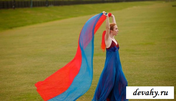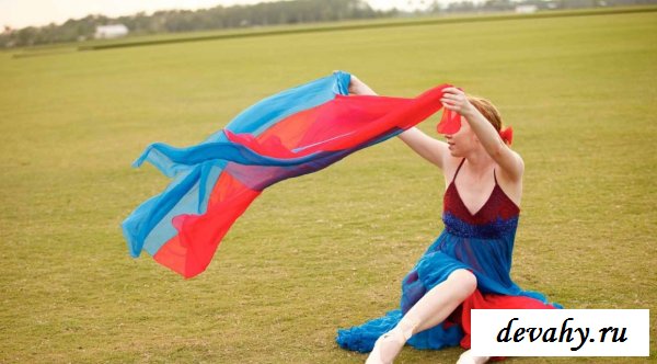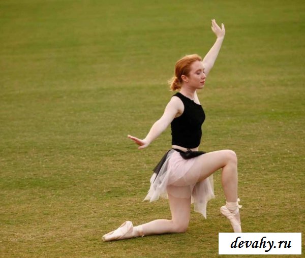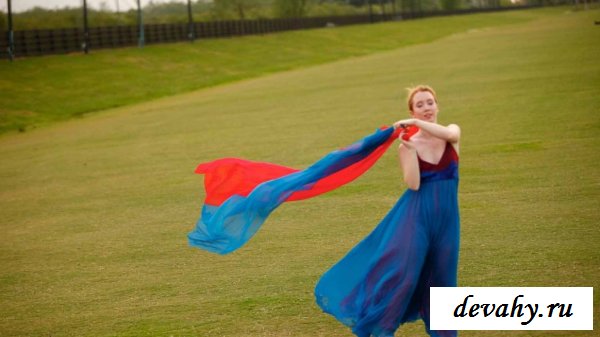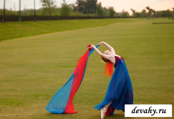 Судя по пуантам, перед нами необычная балерина. На девушке с платком одето длинное платье и в таком наряде она вышла в поле показать соблазнительный танец, она танцует полностью забыв обо всем, ее движения плавные и решительные. Под коней танца девка скинет платье, но полностью не разденется.