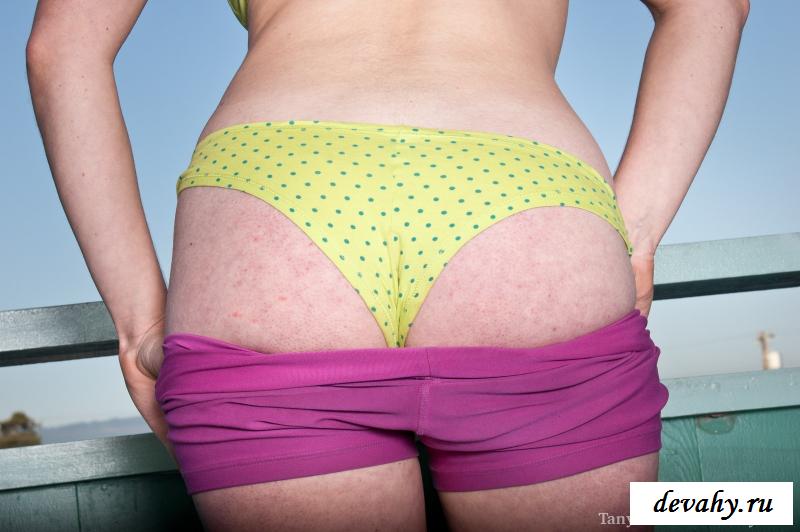 Эротика похотливой Тани, которая однажды после игры в теннис решила показать все свои интимные места, получилась весьма удачной. Все это теннисистка делала прямо на балконе в своей квартире. Именно так она и засветила свои отличные небритые промежности. И когда улыбчивая спортсменка сняла с себя трусы, в кадре была видна ее влажная пизда, покрытая большим количеством волос. Она постаралась ее как можно шире раздвинуть для демонстрации своей заведенности.