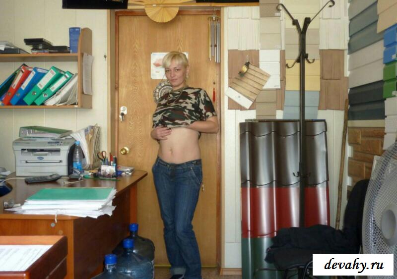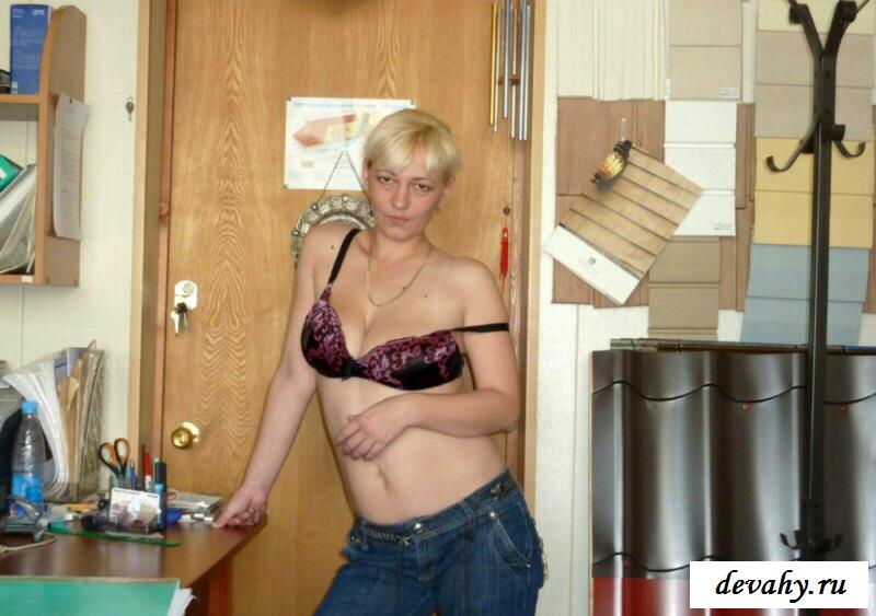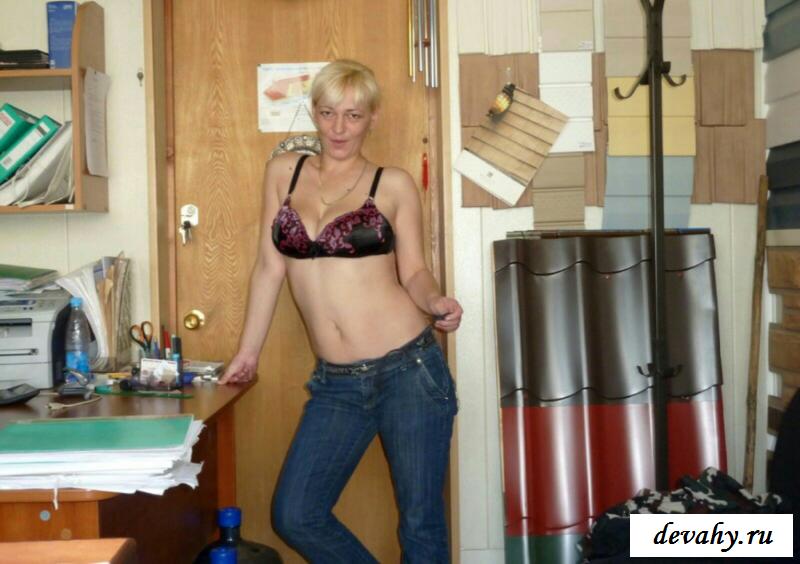 Обнаженная начальница решила расслабиться и при этом показала своим подчиненным и зятю, который ходит у нее в подчинении свои отличные висячие груди и бритую вагину. И вот теперь руководительница автопарка прямо на работе присела на свое кресло руководителя и прямо на нем стала устраивать разврат. Затем она перебралась прямо на пол и уже после этого сидя на корточках она стала еще сильнее лапать все свои интимные места. И этой теще понравилось именно так проводить время.