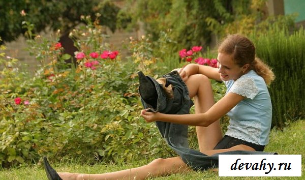 Симпатичная худенькая девочка в джинсах и футболке гуляет в парке. Она решила разнообразить прогулку и обосновавшись возле клумбы, не обращая на прохожих, начала раздеваться. Первым сняла джинсы, потом футболку, оставаясь в белье девочка показа маленькую попку и аккуратную грудь.