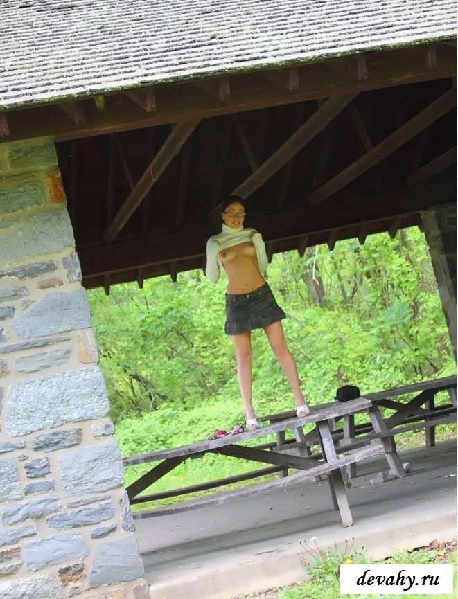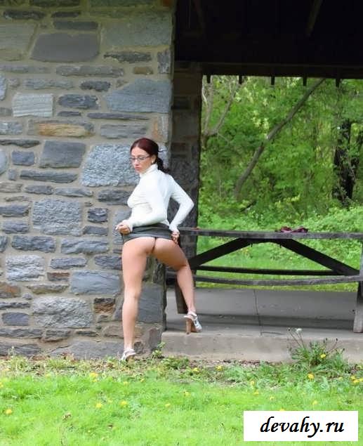 Симпатичная попка раздетой в очках девахи (15 фото эротики)
