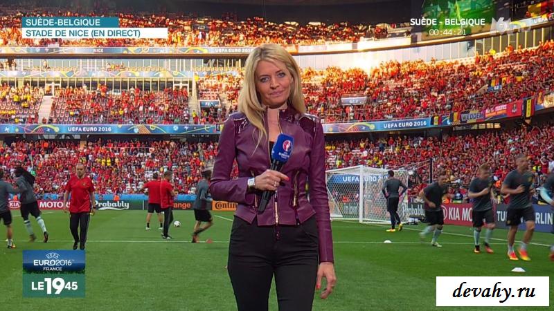 Привлекательная голая журналистка во время своих интервью старается показывать свое тело только в прелестных нарядах из-за чего мужчины, который с ней общаются постоянно обращают внимание на ее тело. И вот сегодня сексуальная французская телеведущая захотела выложить свои снимки в сеть, чтобы еще больше мужиков во всем мире смогли оценить ее прелестную внешность и замечательные формы, которыми обладает эта сучка.