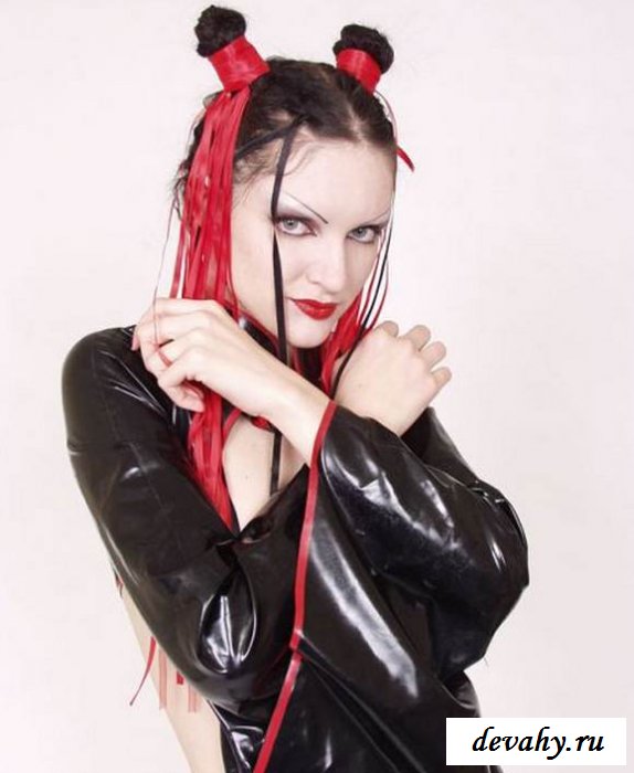 Черти бывают разносторонними – добрыми, шутливыми, злыми и лживыми одновременно. Наша героиня напялила на себя латексное белье и украсила свою головку двумя дивными рожками обмотанными латексными алыми ленточками, наверно чтобы придать себе вид злого коварного чертенка, желающего поиграть с беззащитным мужчинкой. Без трусиков розовая пизда на белом теле очень выделяется и бросается в глаза, как только сучка начинает течь. Дабы хоть немного удовлетворить свое желание она будет теребить клиторок.