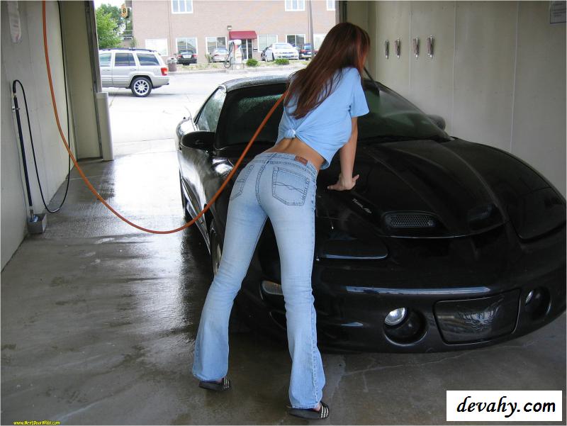 Одна молоденькая работница автомойки, чтобы к ней приезжало как можно больше клиентов, решила заманивать их необычным способом – открывать свои тонкие ножки и животик. И в такой легкой эротике ее обнаженное тело смотрится просто шикарно. И на одном из кадров, когда сучка случайно намочила свой живот водой, она слегка подняла майку, в результате чего стал, виден ее живот и нижняя часть грудей. А после этого мужик просто продолжил наблюдать за ее задом.