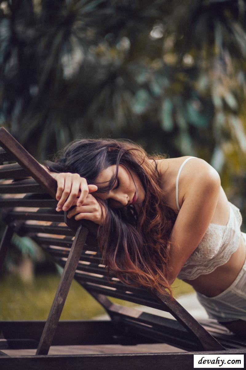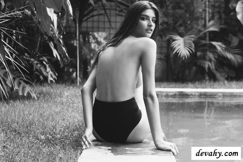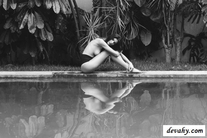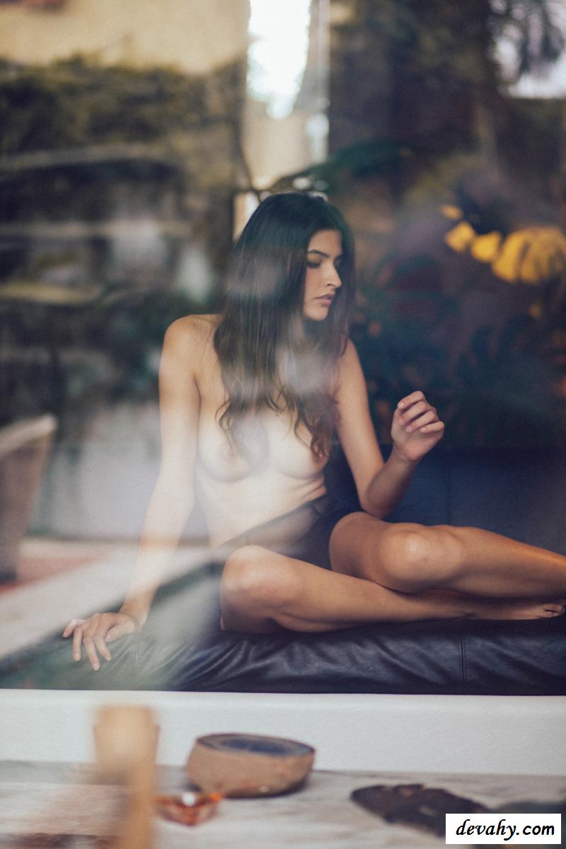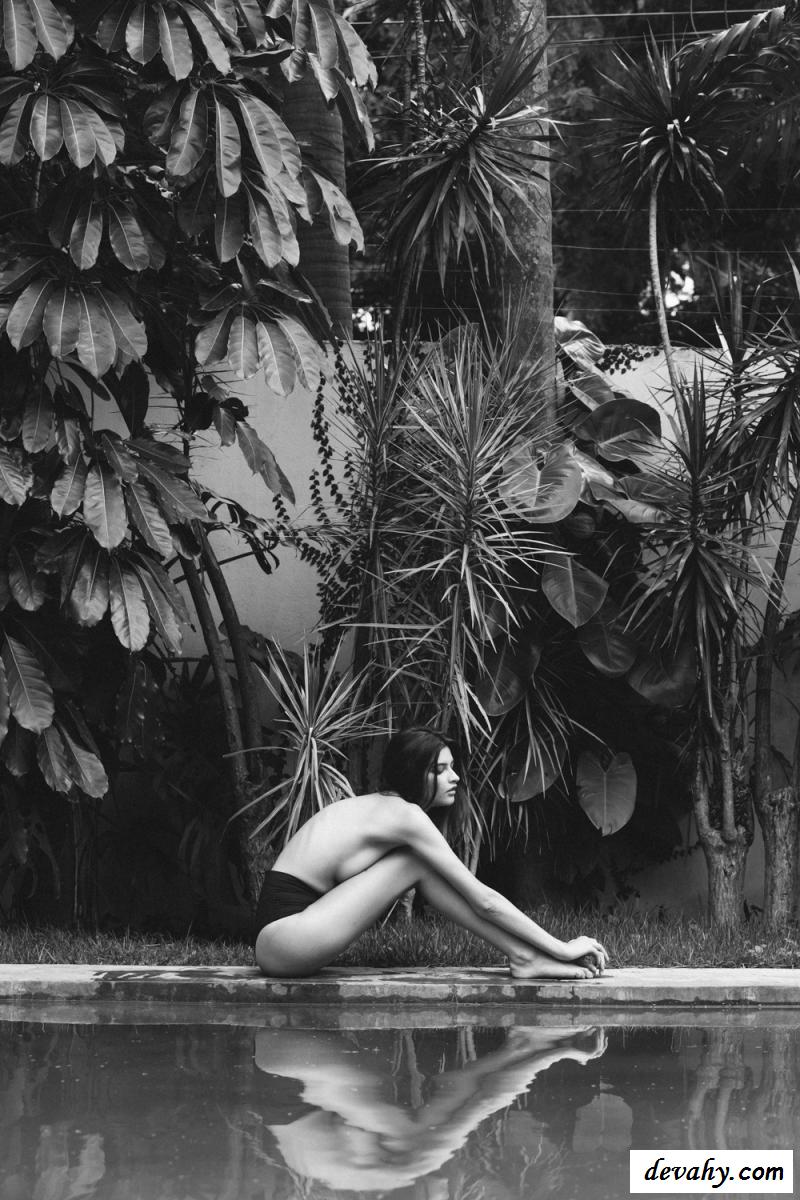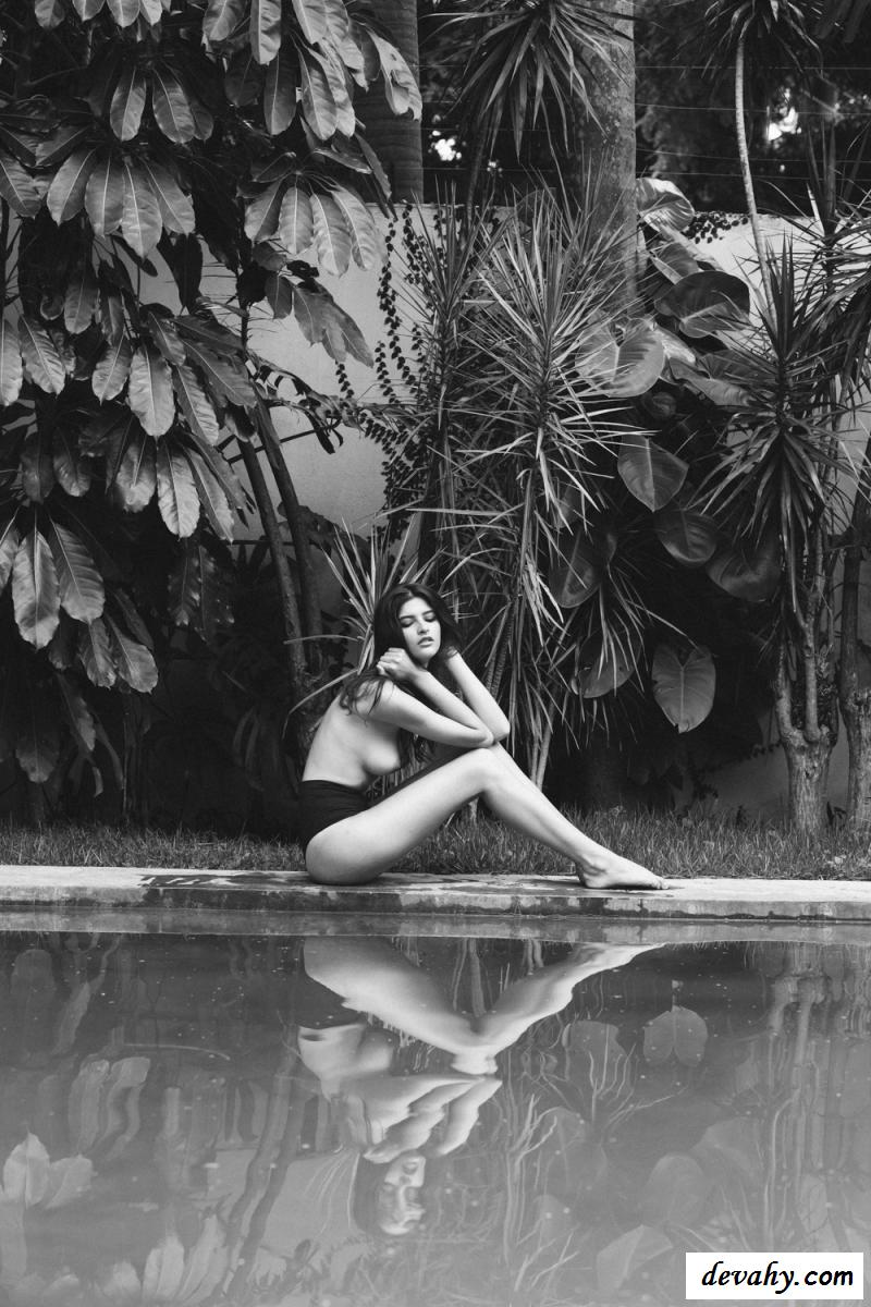 Раздетая худенькая модель после того, как отправилась отдыхать на роскошную загородную виллу, стала там расслабляться и ходить без лифчика. И вот теперь милашка с привлекательными грудями устроила легкую эротику. И изначально она просто сидела на улице рядом с бассейном и хотела в нем немного поплавать, но затем брюнетка передумала и направилась прямо в свой особняк, где под волосами она спрятала титьки второго размера.