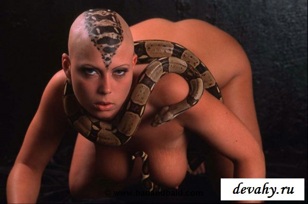 Неслабо смотрится эта лысая колдунья с удавом. Фигура у нее приличная, да и сиськи неплохие. Наверное, удаву тоже нравиться. Как же они нашли общий язык, я не думаю, что на почве секса, тогда непонятно, зачем она разделась догола, для общения со своим шипящим другом. Глядя на эту картинку, мне как то не особо хочется залезть с ней в постель.