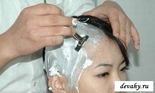 Все через несколько минут ее дурная башка была обнажена и полностью лишена волос.