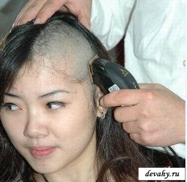 Жила себе обычная китаянка, работала каждый день, как офисный сотрудник. Трудясь с утра до вечера и имея все один входной, всего за несколько лет работа ей осточертела, на столько, что срочно и причем, как можно быстрее изменить что-то в жизни важное. После случившейся вечеринки девка решила обрить голову на лысо, то есть полностью отправившись в ближайшую парикмахерскую, отдалась на растерзание машинки.