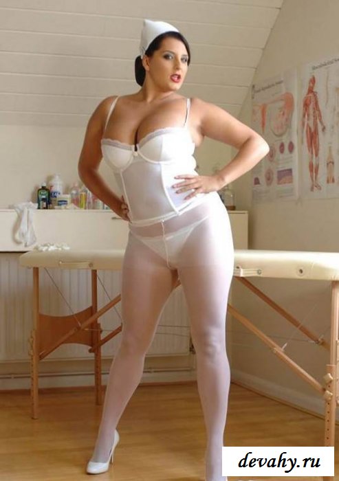 У такой медсестры за несколько дней все больные выздоравливают. А то и нескольких часов! Это все благодаря ласке и нежности и пышной дамочки. Заботливая русская лекарша покажет нам лечебный свой бюст, огромную грудь, приятную и мягкую. Становится понятно сразу все. Ведь каждый день девка приходит в кабинет в чулках и белоснежных колготках на мясистой заднице. Хоть фигура конечно толстенькая и крупная, но у хорошего человека и быть должно много! Бабенка разденется и склонит свои дойки над столом.