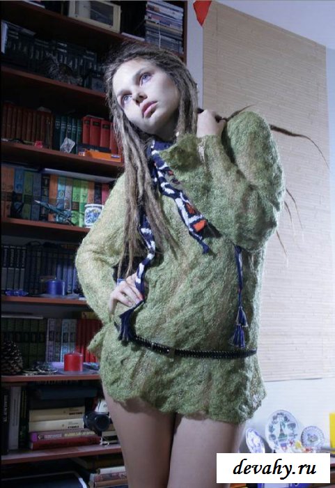 Удобно расположившись, явно не в своей комнате потому как огромное количество книг на полках свидетельствует о чьем-то интеллекте, а у этой молодой сучки на лице он вообще не просматривается. Обсосанные волосы, тупой взгляд и свитер, чуть-чуть прикрывающий письку, сделанный из какого-то непонятного материала. Снимая с себя всю одежду, двадцатилетняя шалава демонстрирует свои совсем еще молоденькие сиськи и упругую жопу, бритый лобок смотрится довольно привлекательно, весь ее отсутствующий вид – только это порти обстановку.