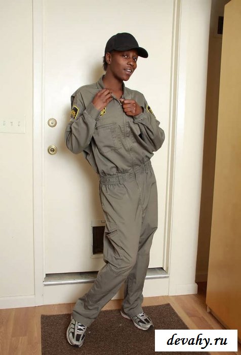 Худая черножопая девка в кепке в странном костюме скаута, и встретив на улице, можно не узнать что это бабенка, а подумать бы что это паренек, причем с огромными губами и носом. Но как эта мулатка начинает раздеваться, то сразу понимаешь - перед нами девка, она ведь в бюстгальтере, он еле удерживает огромные сиськи, а жопа затянута в черные стринги. Вот так нежданно мальчуган превратился в горячую чернокожую телку, которая оголившись решила что каждому увлекательно будет посмотреть как выглядит влагалище изнутри, начав его растягивать
