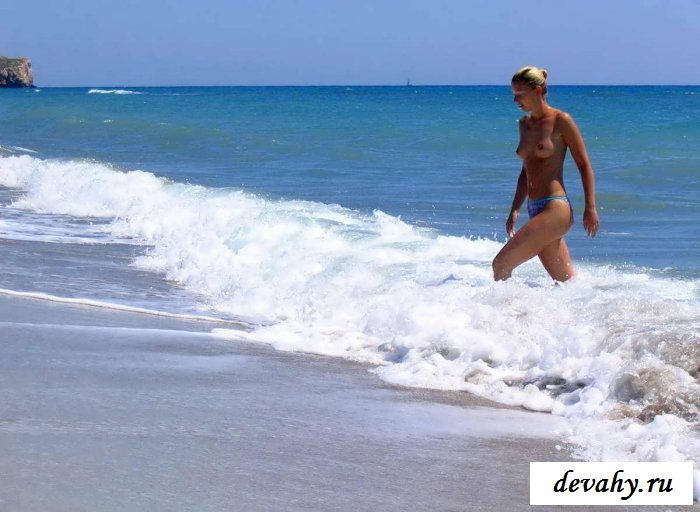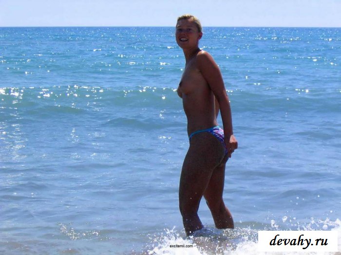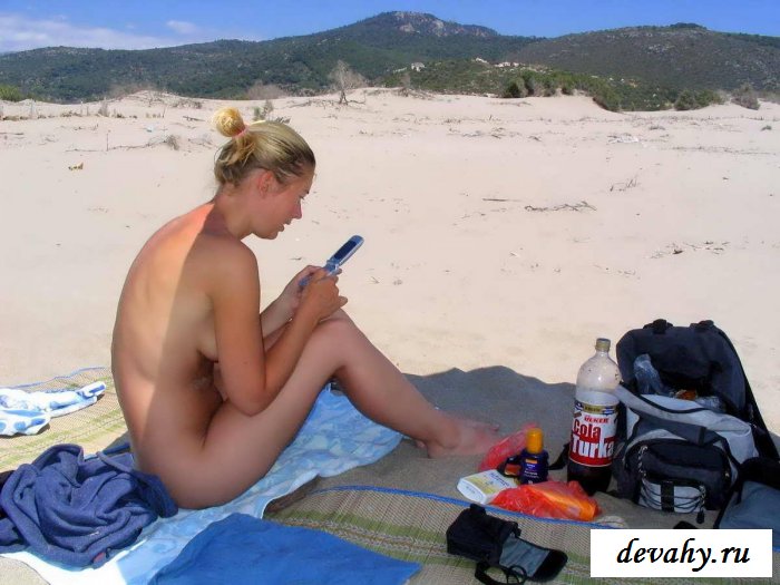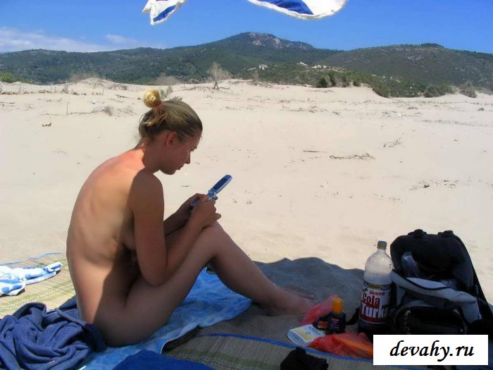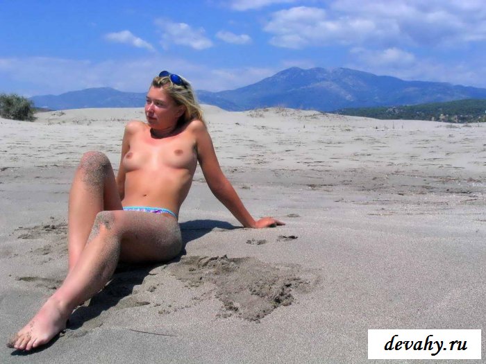 Славная девушка находясь в отпуске и загорая голая на пляже, сделает пикантные фотографии. Загорая сначала в одних плавках с обнаженными грудьми, она забирается на прибрежные камни дабы получились прекрасные фото либо ковыряясь в песке у края воды. Сидя либо стоя, она показывала свои прекрасные сиськи небольшого размера, и только в самом конце необычной для нее съемки, сняла плавки раздвинув ножки. Между ножек как и ожидалось притомилась мокрая пиздушка с раскрасневшимися половыми губами.