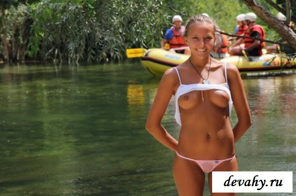 Эту невероятную красотку высадили на берегу группа чуваков на лодке, они уплыли дальше, а девочка в одиночестве принялась резвиться и купаться, периодически выходя на свой маленький пляж. Тело ее идеально, красивая грудь, попочка и конечно аккуратная пися.