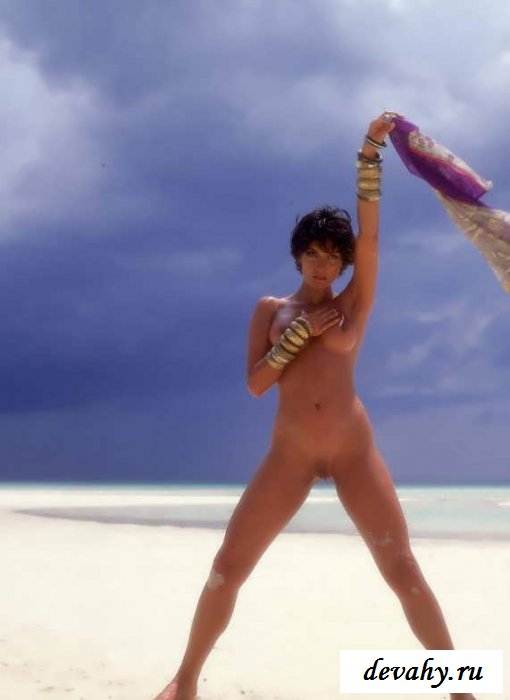 Одинокая, потерпевшая крушение своей яхты, знойная шатенка осталась на диком пляже с одним единственным платком вместо одежды. Не теряя времени даром деваха решает показать местным крабам стриптиз. Судя по всему ей это неплохо удается. Короткая прическа стройная талия, фигура напоминает творение неизвестного, но явно талантливого мастера, который вложил душу в свое произведение. Точеный стан не может остаться без внимания, словно вылитая из металла попка с выбритой пилоткой так и шепчут слиться с ними воедино.