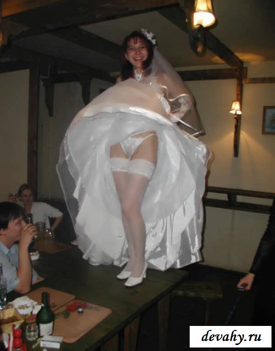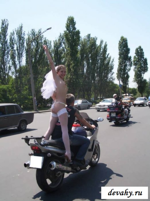 Виновницы торжества безумствуют голыми Мы снова на свадьбе, кругом пестрят платья, а самые главные виновницы торжества немного безумствуют, одна девки устроила танец на столе с показом белья, другая с голыми сиськами прокатилась на байке, третья показала пизду гостьям, в общем смотрите. 52 22 сентябрь 0 19 610 Категории: Голые невесты