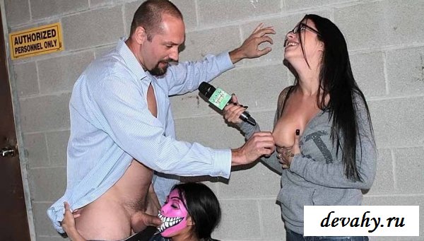 Нам удастся побывать сегодня на реальных съемках порнушки. Пока раскрашенная сука сосет хуй у чувака, у него берет интервью журналистка, но вскоре и она попадет в оборот страсти группового секса. Ей предстоит на пару с сукой отсосать здоровенный хуй и узнать, как могут трахаться жаркие парни.