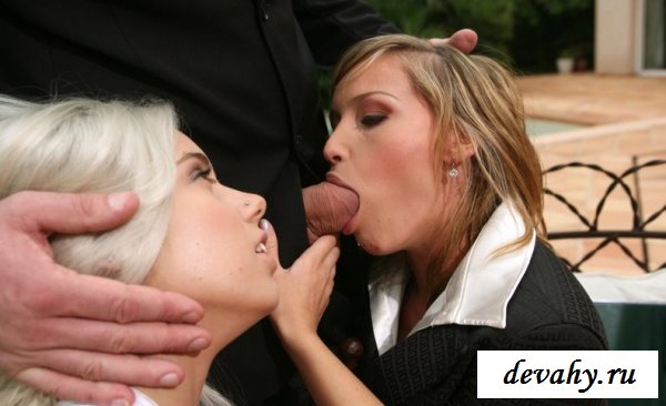 Две сногсшибательные развратные подруги отдыхают возле бассейна. К ним подойдет парень в костюме и молча достал из штанов свой хуй, предложил телкам показать свои способности в отсосе мужской плоти. Шлюхи на перебой приняли за дело, доказывая свое превосходство.