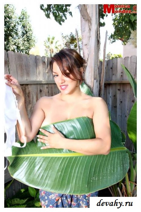 В такой фотосессии просматривается первобытность и даже хищность какая-то, огромная обнаженная грудь дамы прикрыта только пальмовым листом. Порно знаменитость Monica Mendez, с этой красавицей явно не заскучаешь, она сможет и приласкать, и утихомирить, и развеселить. Ее нежные ореолы сосков прямо просятся окропить спермой, дабы ощутила весь вкус мужской силы. Огромная грудь - изумительное превосходство, которого стеснятся не стоит. Голая барышня жаждет подарить удовольствие мужчине.