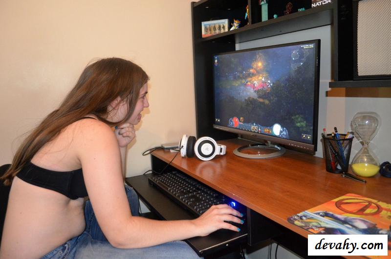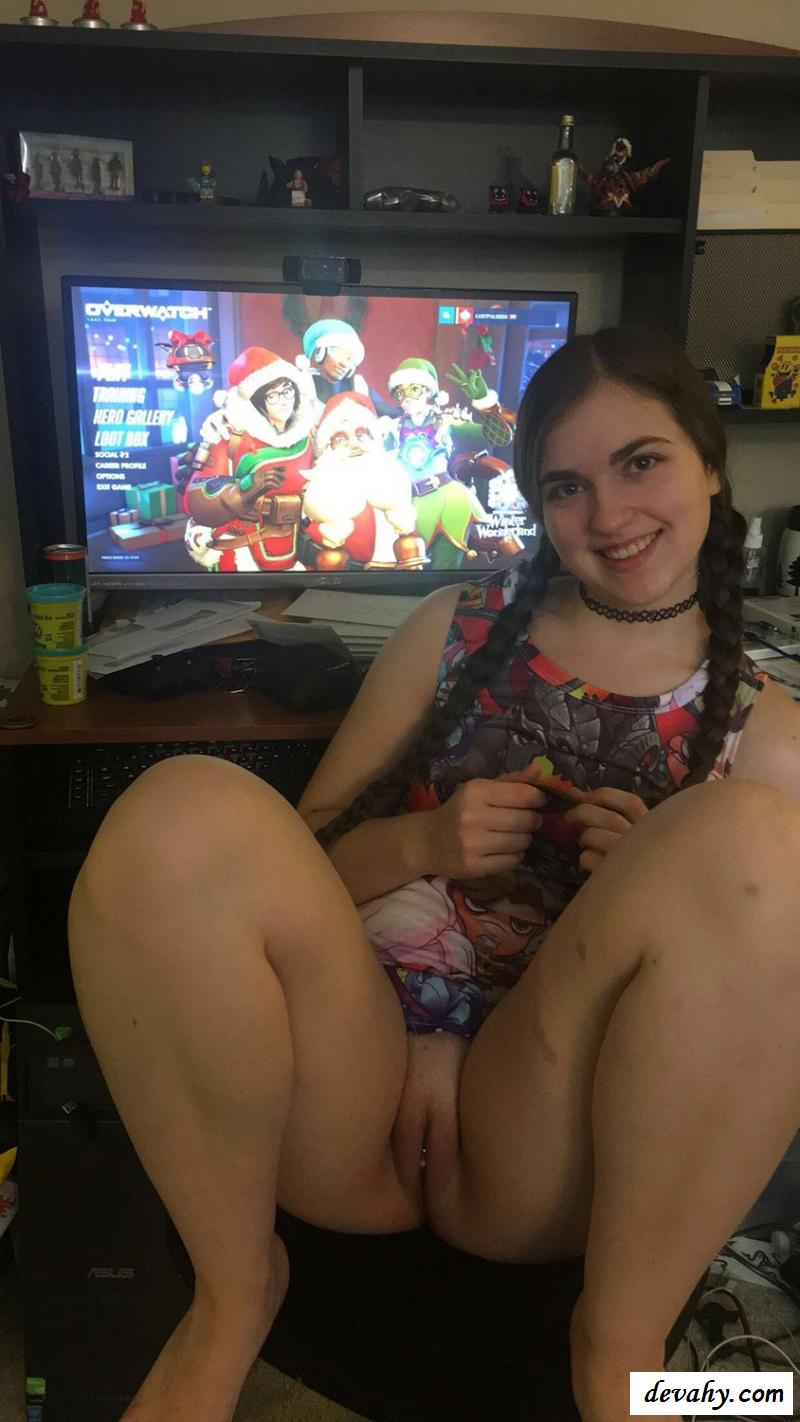 Чтобы привлечь многочисленную аудиторию к своему стриму, красавица стала делать реальные голые снимки, где продемонстрировано как она играет без трусов. На этих фотографиях видна раздетая стримерша, сидящая на кресле за компьютером. И после того как эти кадры появились в сети ее трансляции стало смотреть большое количество людей, поскольку все были заинтересованы в том, чтобы увидеть замечательную возбужденную бритую пизду этой студентки.