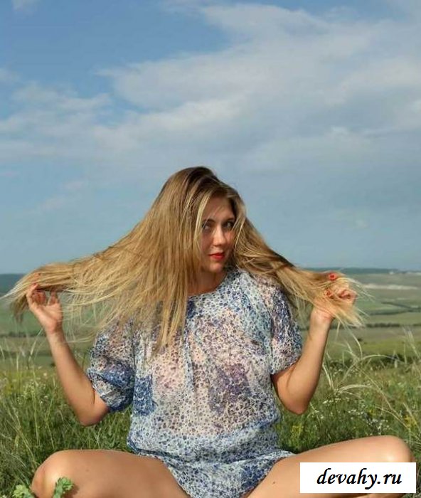 На бескрайнем поле русская дивчина чувствует себя уверенно, в таком месте она нескромно ведет себя и покажет свою мандуху на природе крупным планом. Расстелив полотенце на зеленой траве, встала на него на колени и сразу начала поднимать свое платье обнажая слегка заросшую пизду, вроде и не потрепанную щель покажет, а дырень окажется знатной. После полностью скинет наряд и без одежды продолжит показ своего тело в разных занимательных позах. В общем девица хороша собой, да и попа выглядит гуд.