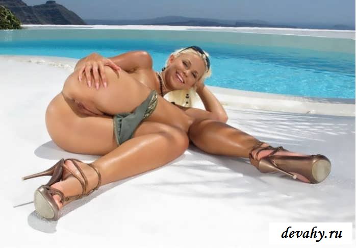 Не закомплексованные телочки любит загорать обнаженными, наша блондинка как раз из таких, только ей еще нравится в свою киску запихивать бусы, а еще она обожает обливать свою попку и все тело молоком, испытывая невероятные ощущения от чувства когда она стекает по нежным лепесткам разгоряченной на солнце киске. Один только такой вид чего стоит, сучка прижимается упругой грудью к плитке выложенной вокруг бассейна, попа ее при этом высоко задрана вверх, а руки тем временем с возбуждением тянут половинки в стороны.