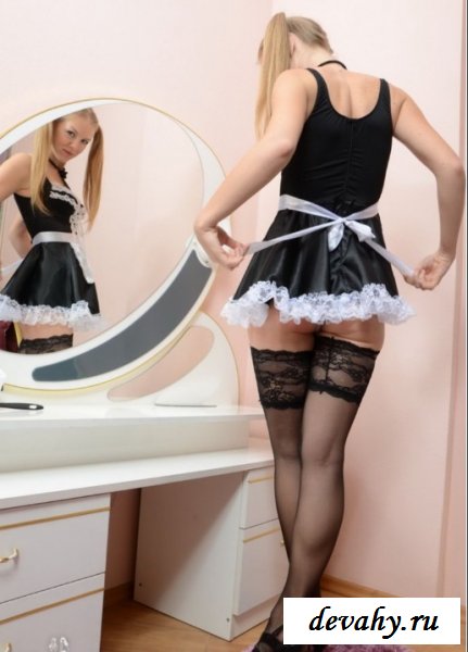 Эротичная молодая служанка с косичками занимается своими каждодневными обязанностями. Уборку она делает, как правило в своей форме, но сегодня ей захотелось сделать уборку голой пилоткой, задумано – сделано. Уже скоро дивчина махала своим веником без трусов.