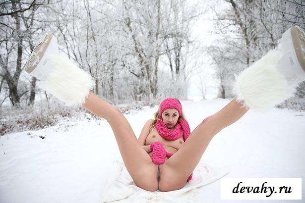 Ошеломляющие снимки с голой Снегурочкой в зимнем лесу. Из одежды на прелестнице лишь повязка на голове, шарфик и варежки с сапожками. Светловолосая красотка выглядит великолепно. Девочка не опасаясь замерзнуть, показывает свое загорелое, стройное, молоденькое тело. У нее красивые, эротичные сиськи и твердые от холода затвердевшие соски. Она стеснения покажет свою выбритую писю и красивую попку. Набегавшись голышом девица запрыгивает в машину в которой можно отогреться
