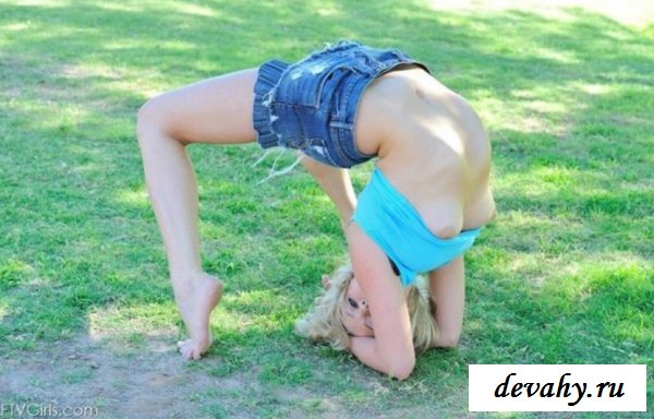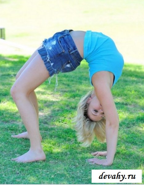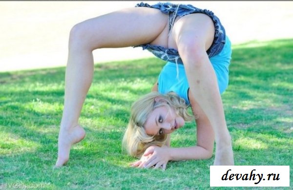 Выбритый станок девочки на мостике Сегодня нас ждет удивительные кульбиты девочки гимнастки, которая вышла погулять на зеленую травку. Невероятно изгибаясь, девушка садится на шпагат, становится на мостик, выставляя на осмотр выбритый станок. Сиськи телочка тоже не забудет засветить. 30 25 сентябрь 0 7 806 Категории: Голые спортсменки