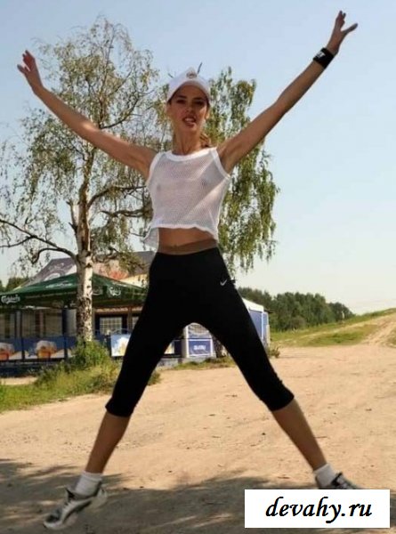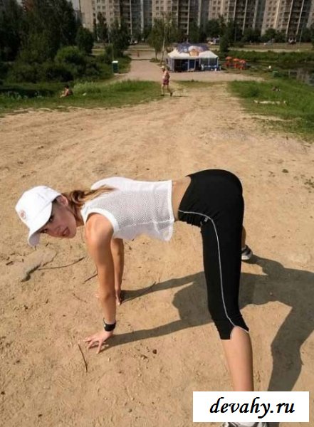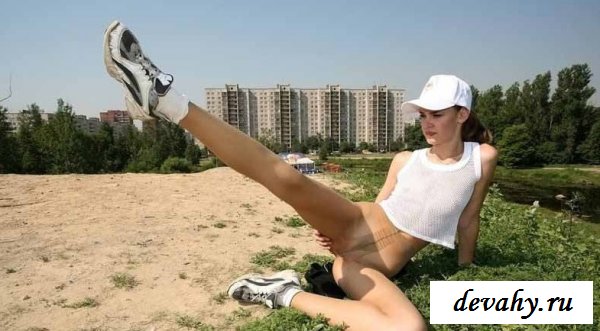 Утренняя пробежка это каждодневная необходимость этой симпатичной и подтянутой девчонки. В то время, когда ленивы народ спит наша спортсменка уже на пустыре разогревает мышцы, но кроме не хитрых упражнений вы увидите, ее оголену письку через колготки, и грязные носки.