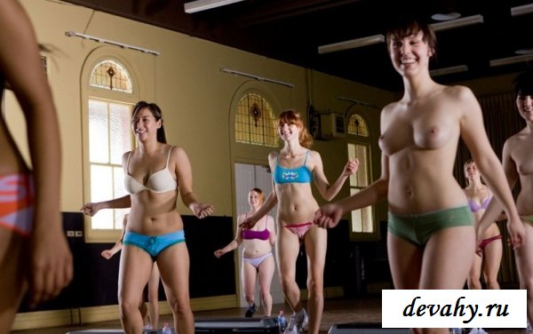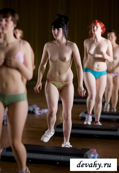 Как приятно наблюдать за тем как проходит аэробика голых девушек в спортивном зале. В зале собралась толпа разномастных телочек, рыжих, блондинок, брюнеток, негритянок, и все с удовольствием приняли условия заниматься без формы, показывая различные сиськи с попками.