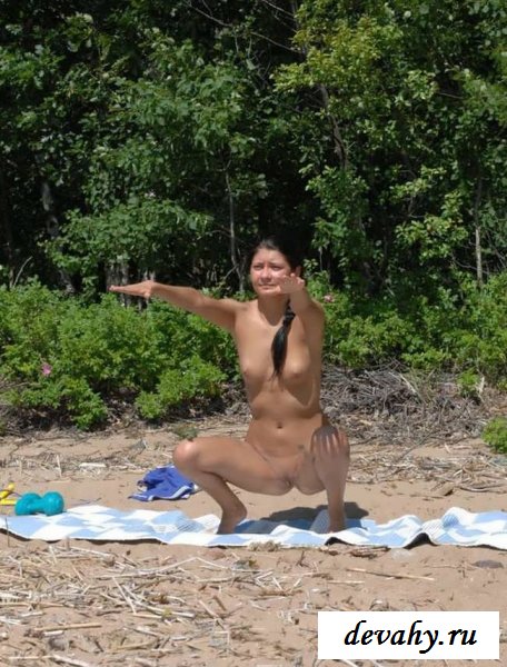 Милая девчонка выбралась на свежий воздух в укромное местечко для занятий голым спортом. Здесь ей комфортно и не кому помешать воплотить фантазии в реальность. Она давно хотела так растягиваться и сделать любимые упражнения, ее киска с грудками прекрасны.