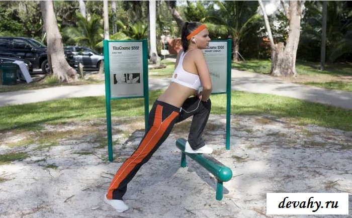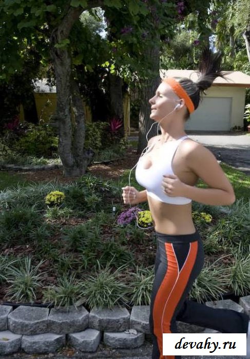 Вы часто присутствуете на тренировках девушек занимающихся спортом? Сегодня именно тот случай когда проходит интересное занятие с гибкой девчонкой. Начинается все с пробежки, обтягивающие штанишки и топик отлично подчеркивают ее подтянутую точенную фигурку. Добежав до спорт площадки она начнет заниматься, выполняя упражнения на гибкость, на пресс, при этом слушая музыку. Придя домой она будет расслабляться лежа голой в шезлонге, выставив большие сиськи и скромно сдвинув ножк.