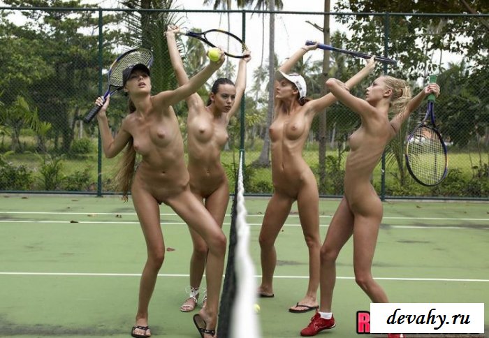 Молодость дело такое, что нужно использовать каждый день так, чтобы потом не было скучно в старости, и было что вспоминать. Вот эти четыре обнажённые девахи веселятся на полную катушку, придумывая постоянно экстравагантные развлечения для себя. На этот раз раздетые проказницы решили исполнить эротический теннис, взяв ракетки в руки и оголив все свои интимные прелести, что получилось очень маняще со стороны. Да, за таким спортом намного больше зрителей бы следили не отрывая глаз.