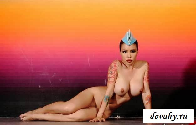 Грудастая обнаженная стюардессы с татушками (15 фото эротики)