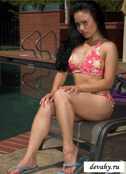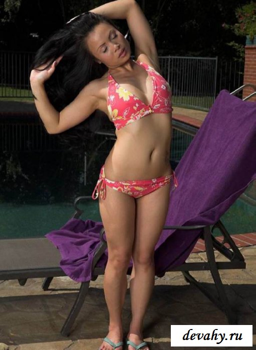 Под вечер к бассейну подошла интересная татарочка, небольшого. Немного по стояв она стянула джинсовую юбочку и маечку, и оставаясь в бикини на завязках присев начала поправлять волосы. Заодно хвастаясь немного подкачанными, бедрами. Уже не первый день видать телка тут загорает, если у нее такая кожа, а может это и от природы. Искупавшись, и вертя привлекательной попкой потеряла бикини, сползая с ягодиц обнажая булки! На спине еще видно татушки, вместе с мокрой и горячей пиздушкой.