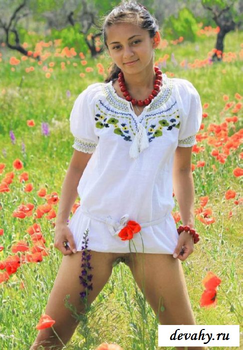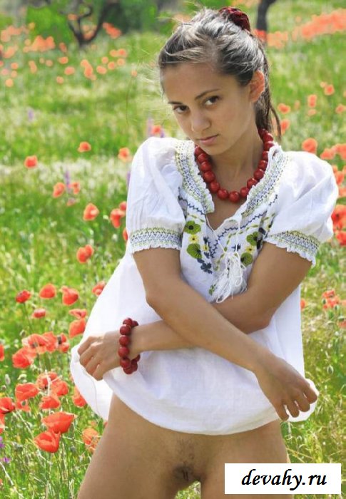 Вай, в такой денек нужно радоваться и веселиться отрываясь на всю катушку. Молодая татарка мудро поступила одев свой национальный наряд и отравилась по дальше от своей деревни в поле, где вообще никого никогда нет. Щурясь от яркого солнца, сучка раздевается и оставаясь в одной блузке, начала щеголять голой попкой на маковом поле. Её киска аккуратна и аппетитна, а небольшие сиси наполнены лаской и нежностью.
