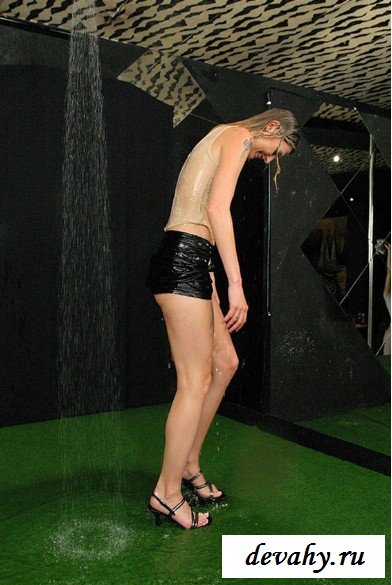 Красивая девушка хотела попробовать принять душ в одежде и у нее получилось. Включив напор воды она визжа от радости встала под него. Когда ее одежда намокла, можно увидеть, как красива фигура мокрой девочки с длинными ногами и веселым улыбающимся личиком.
