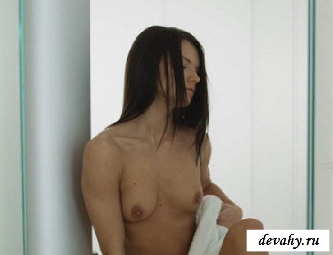 Огромная спальня покрыта белыми простынями и вокруг все тоже белоснежно. Худощавая соска хочет принять душ, который находится рядом с этим помещением перед приходом своего парня. Огромная кабинка может вместить не только одного человека, если пофантазировать, то и пару. Горячая вода бежит по ее стройному телу, омывая темные соски и упругий животик. Теплые струи ласкают кожу и устремляются вниз. Прелестное создание, так ее можно назвать, завершив купание, обтирает себя мягким махровым полотенцем.
