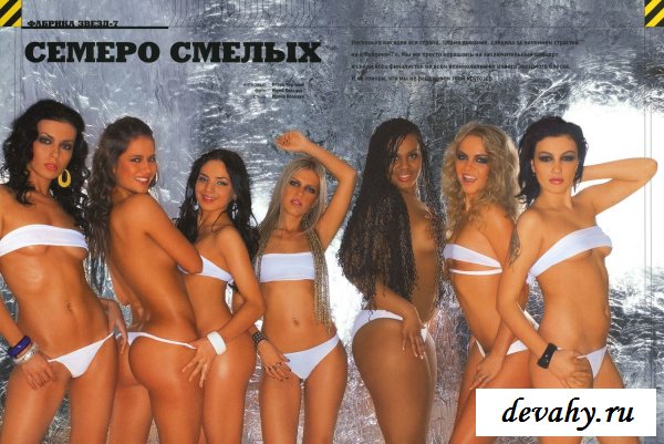 Самые знаменитые участницы седьмой фабрики звезд, среди них Татьяна Богачева, а вместе с ней голые, Катя Цыпина, Маргарита Герасимович, Юлия Паршута, Наталья Тумшевиц, Корнелия Манго и Анастасия Приходько, они с удовольствием разделись для мужского известного журнала.
