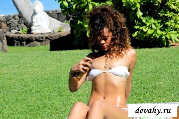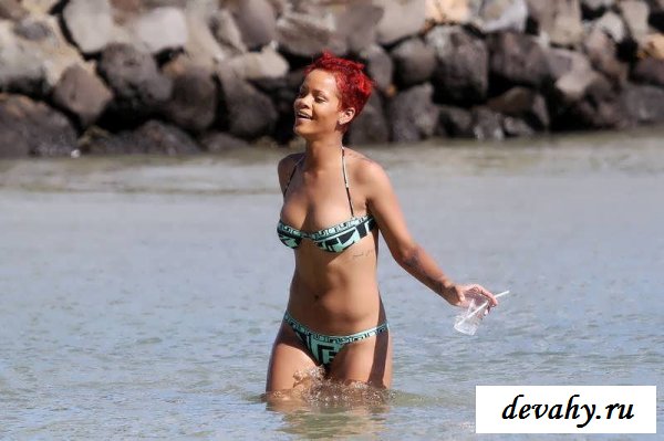 Знаменитости тоже люди, им так же необходим отпуск. Сексуальная Рианна обожает носить бикини, тем более у нее отпадная фигура, потрясающие сиськи, упругая задница, стройная талия. С таким телом любой купальни будет смотреться превосходно, а тут такие откровенные.