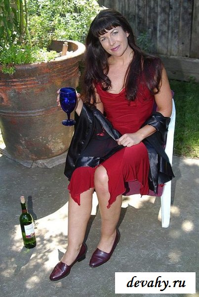 Хорошо отдохнуть в тени деревьев в прохладном саду, да еще и вина выпить. Прямо как наша героиня в красивом расположилась в кресле, томно потягивая винцо. Захмелевшая дамочка разделась предлагая посмотреть на ее дойки и давно не бритую дряхленькую вагину.
